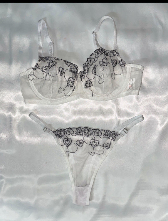 ست شورت و سوتین زنانه تمام تور برند ترک رنگ سفید با گلدوزی مشکی