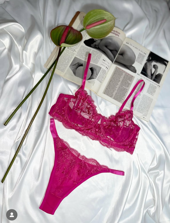 ست شورت و سوتین زنانه تمام تور برند ترک سرخابی
